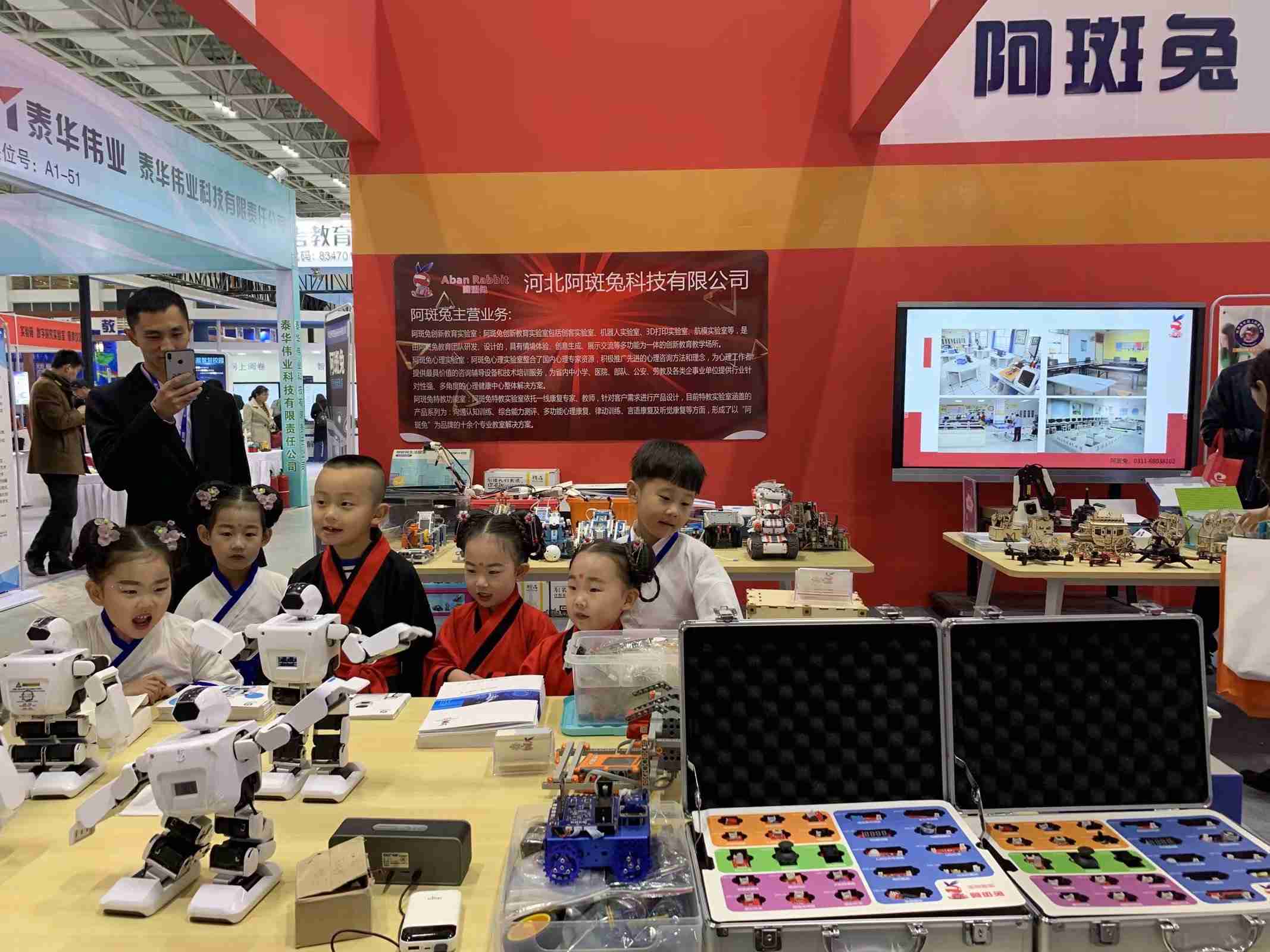 阿斑兔將機器人、創客、3D打印、航模等融為一體,研發、設計具有情景體驗、創意生成、原型制作、展示交流等多功能為一體的機器人教育教學場所,即創新教育實驗室,針對不同年齡段學生的特點、學校學情等,為其提供足夠的空間、設備和完善的課程體系。